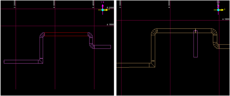 - ダクト仕様は接合先の仕様になりますが、接合先のダクトNo.、スプールNo.等が未設定の時は、接合しようとしたダクトの仕様になります。
