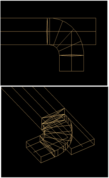 「延長」は、2本のダクトの末端からダクトを延ばし、双方の延長線上で2本のダクトを最短距離で接合します。