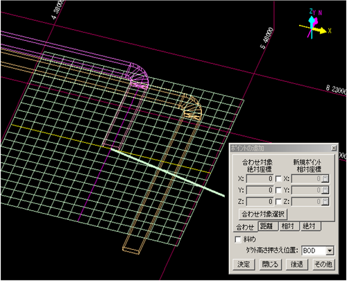 - 3Dモデル入力画面上にガイドプレーンと【ポイントの追加】Dialogが表示されます。