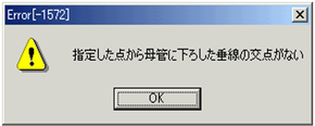 - 成長してきたダクトの入力方向と平行でない既設ダクトを選択したときは、エラーメッセージが出ます。