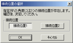 末端の点から指定した角度の勾配で母管に下した交点(分岐点)が2箇所存在する時は、【接続位置の選択】で接続位置を選択してください。