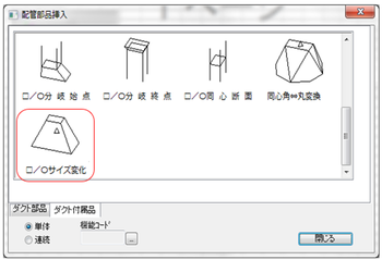 ダクト付属品タブより □/○サイズ変化 をClickします。