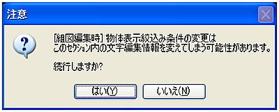 - 下図の様に【注意】Dialogが表示されます。