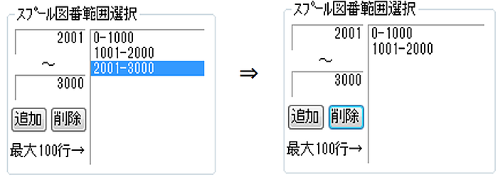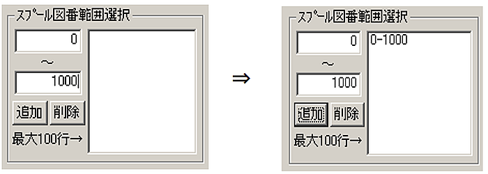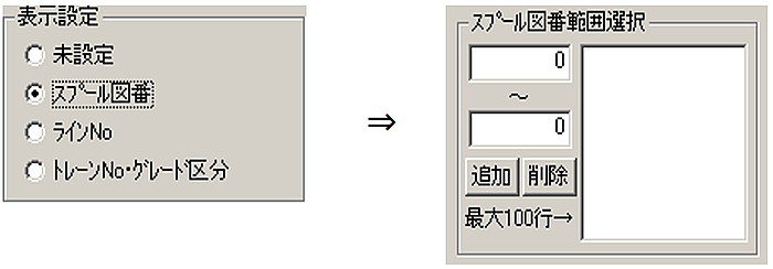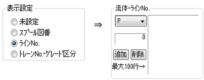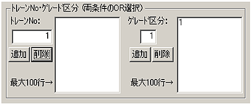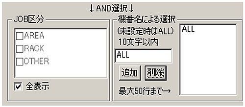 - また機番をキ-ボ-ド入力し[追加]ボタンをClickで入力した機番のみ表示が可能になります。削除は削除したい機番を選んで[削除]をClickで削除します。