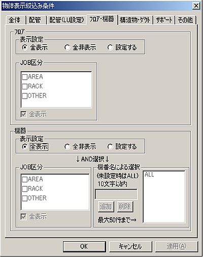 物体表示絞込み条件 フロア・機器
