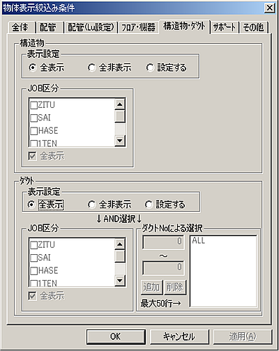 | JOB区分 | 選択されたJOB区分の配管のみ表示します。 |