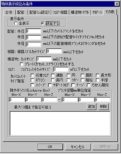 物体表示絞込み条件 配管