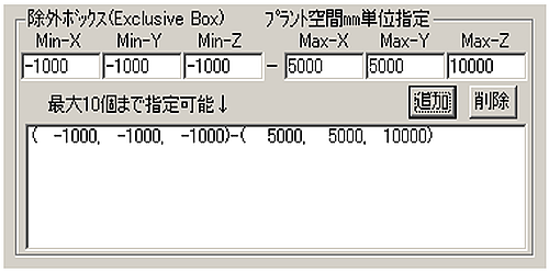 除外ボックス(Exclusive Box)プラント空間(mm)単位指定