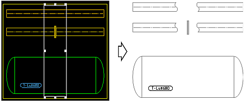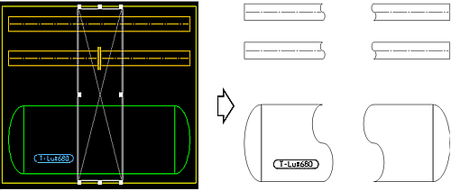 の様な、省略マークが表示されます。 - 図面上の配管をボックス作成することで配管を中間省略表示できます。