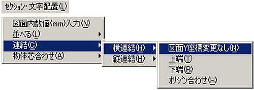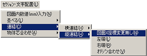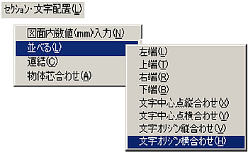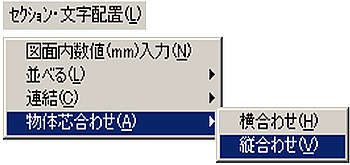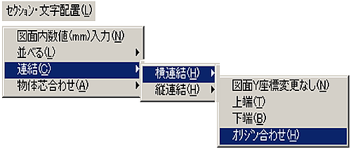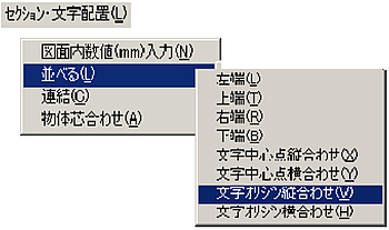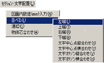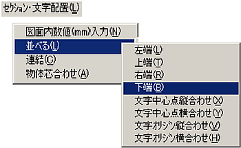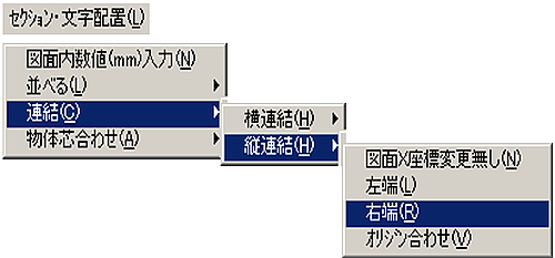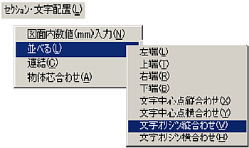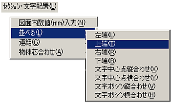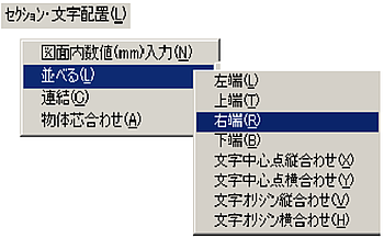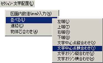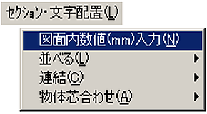 メニューバーより〔セクション・文字配置(L)〕-〔図面内数値(mm)入力(N)〕を選択します。