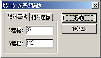 下図の【セクション・文字の移動】ダイアログが表示されます。