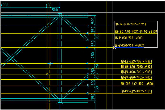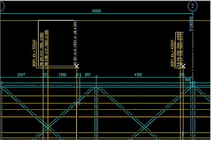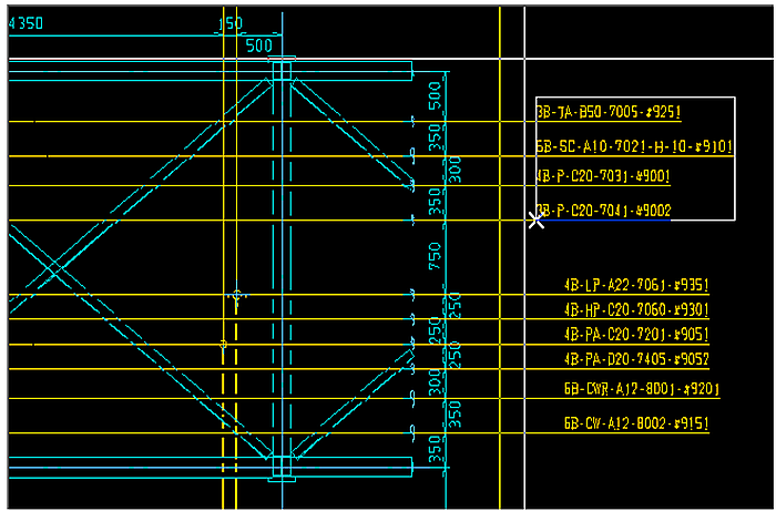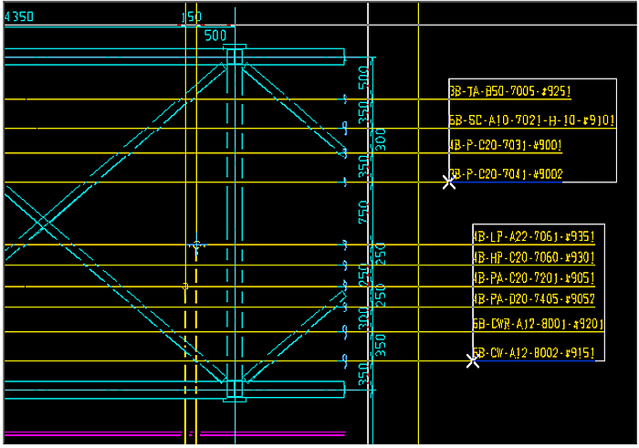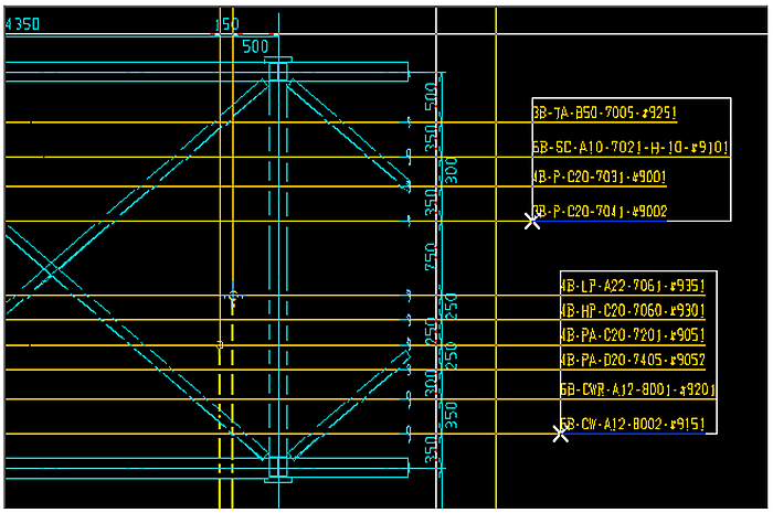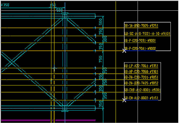 アイコンをクリックします。)、下図の様に、セクションの通り芯と、別のセクションの通り芯とを縦合わせで連結する事ができます。