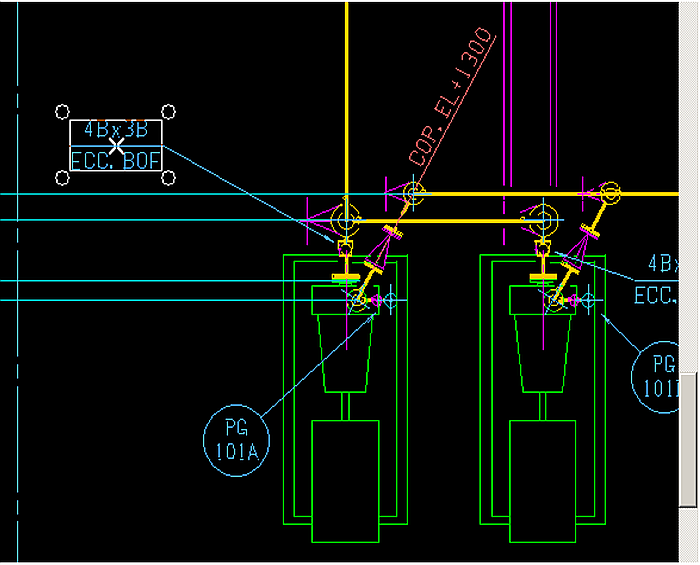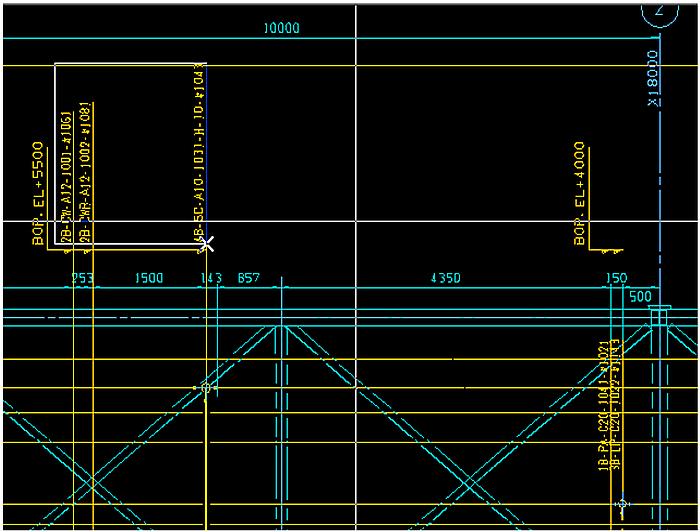アイコンをクリックします。)、下図の様に、セクションの通り芯と、別のセクションの通り芯とを横合わせで連結する事ができます。