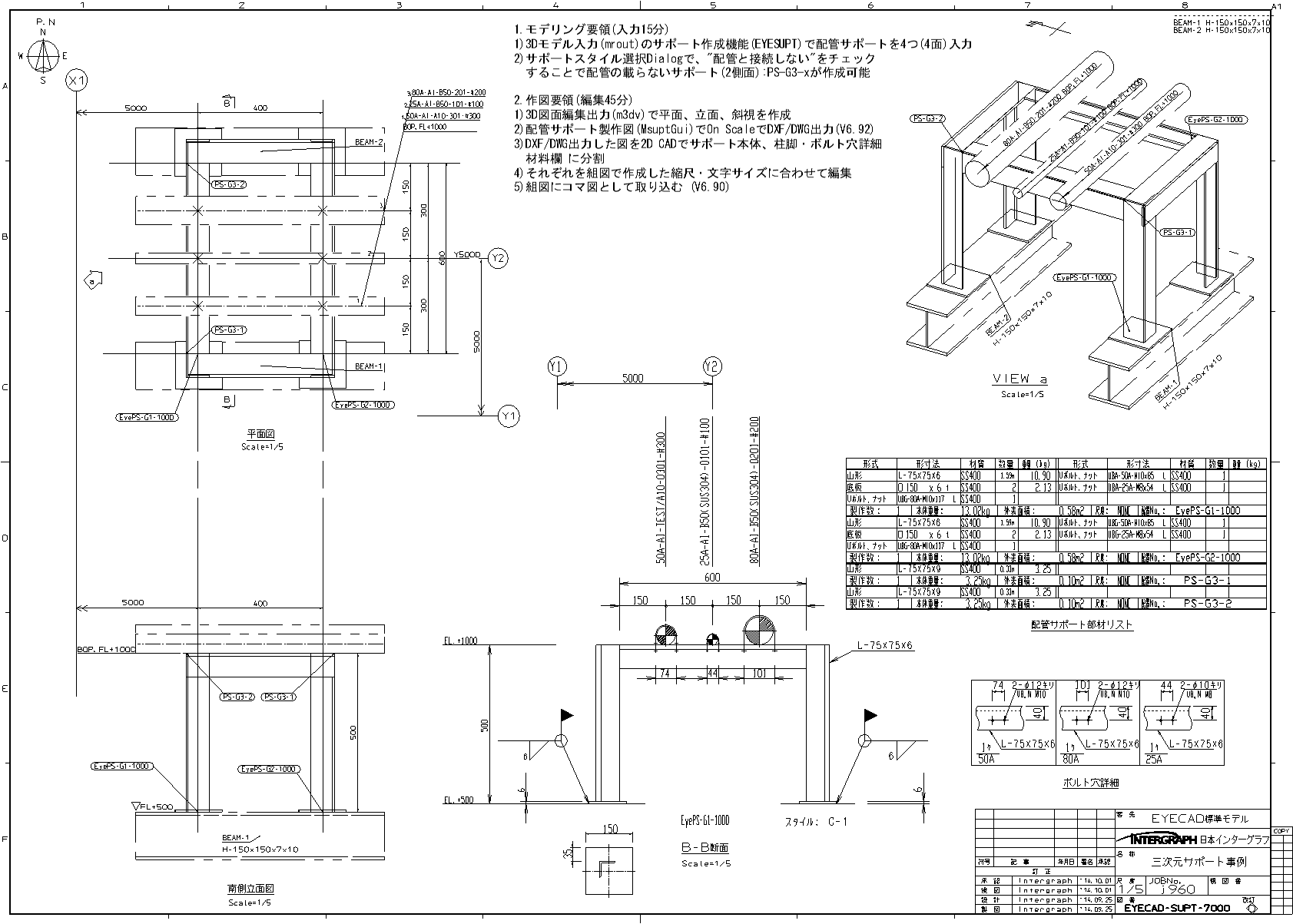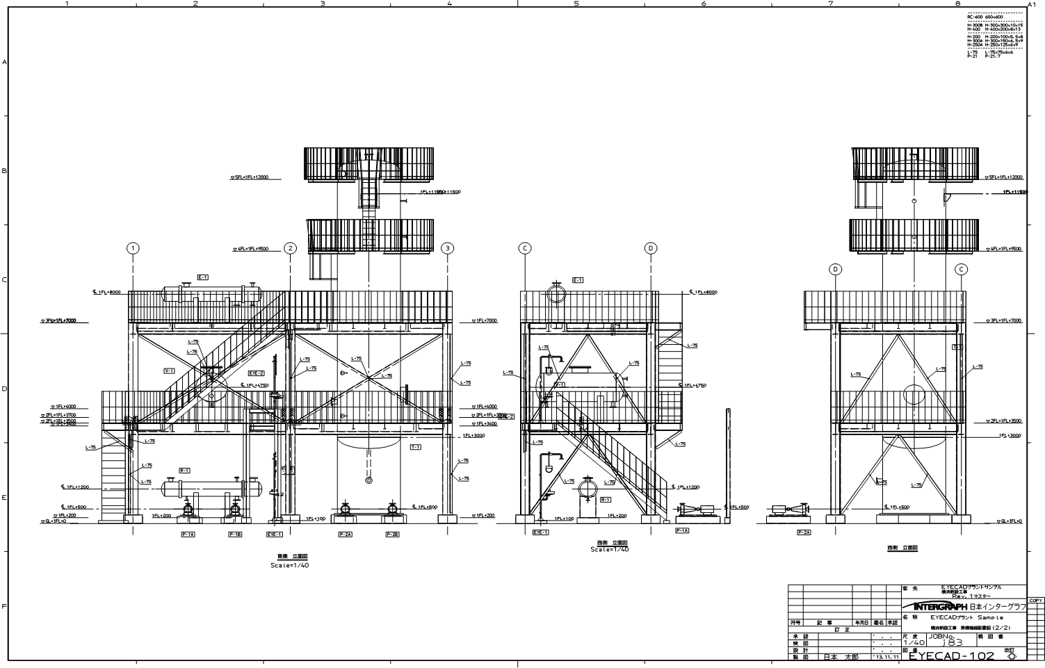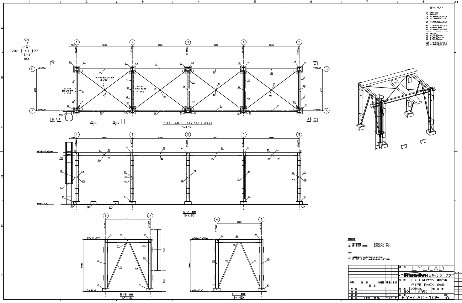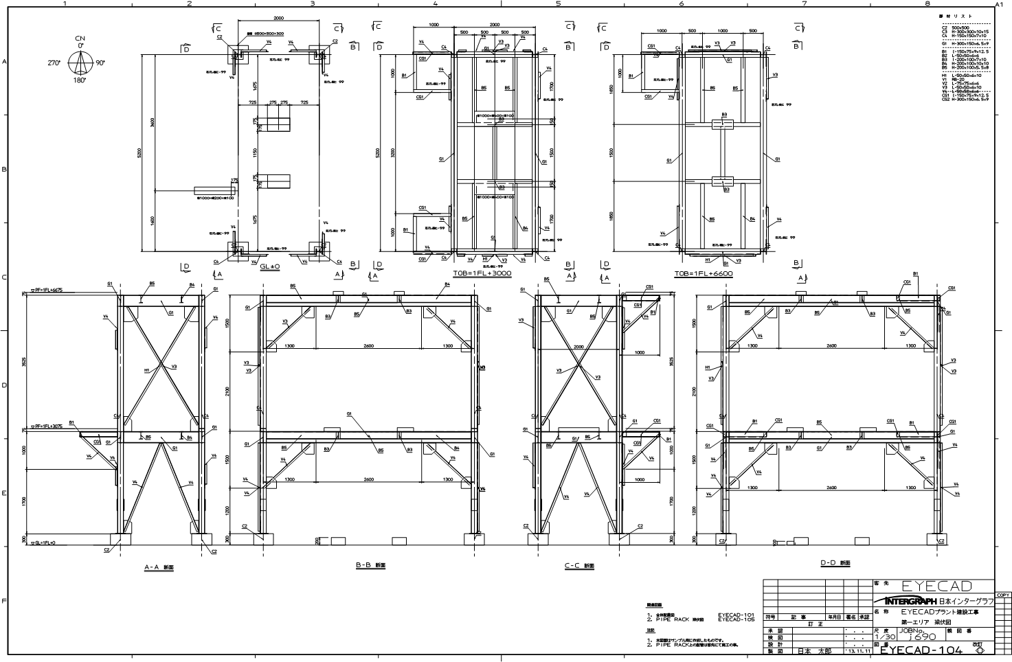 架構機器配置図(立面図)・部材リスト