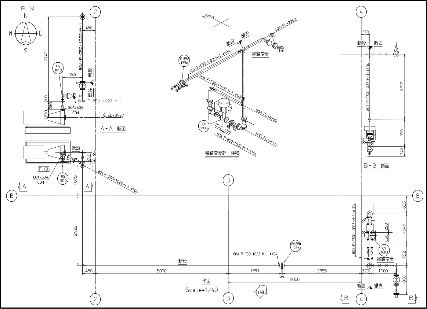 新設・既設・撤去配管の取合事例図