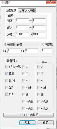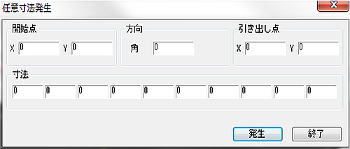 | 終了 | 寸法発生ダイアログが閉じられ、文字情報対話へ戻ります。 | |