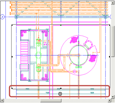 この矩形で囲まれた範囲にあるものが寸法発生対象になります。