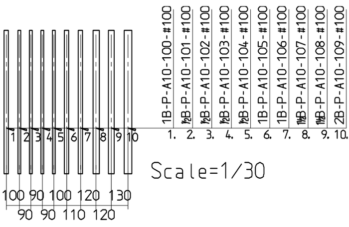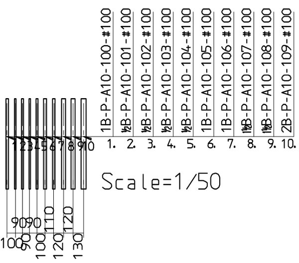 | 細 | 大、中、小寸法とカタログラインの曲がりと分岐間の寸法を発生します。(細寸法) | |