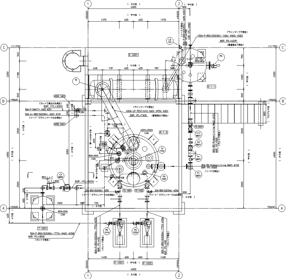 - 寸法値は、プラント上の寸法値をmm単位で入力します。