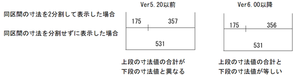 ※)寸法値の計算方法を変更したため、Ver5.20以前で作成した図面の寸法値が1mm変わる寸法が出てくる可能性があります。