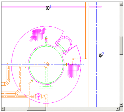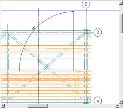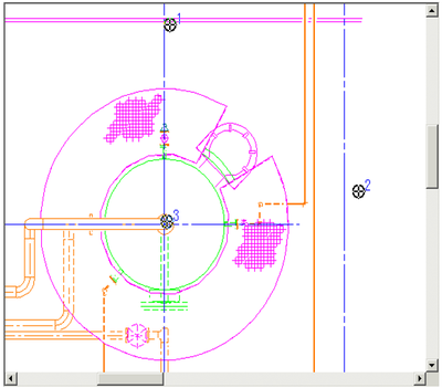 - 角度表示の円弧の中心は、この直線と手順2で指定した配管の交点になります。