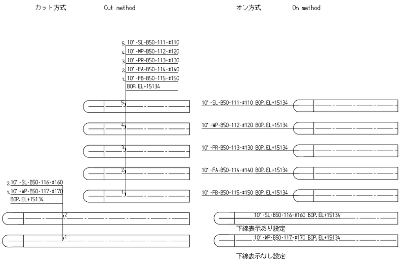 配管組立図の中のラインマークの発生方式には、2つの方法があります。