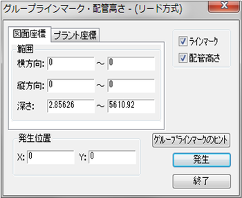 メニューの〔発生(C)〕-〔グループラインマーク(G)〕―〔オン方式(O)〕をClickします。