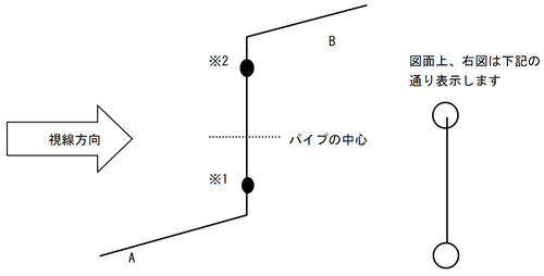下側(※1)をClickした場合→Aのパイプ部の配管高さを発生します。