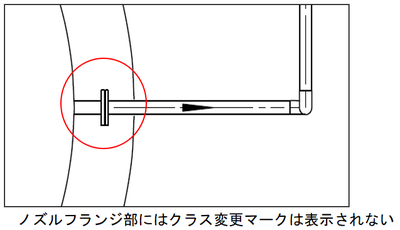 下図のように、ノズルフランジ部でスペックチェンジを行ってもスペックチェンジマークは表示されません。