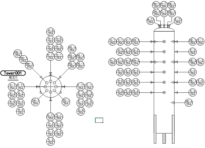 文字レイヤNo.25のフラグを変えることにより、計装品タグの形式を変更できます。