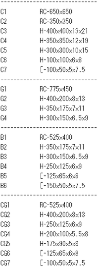 | 柱 | 大梁 | 小梁 | 垂直ブレース | 水平ブレース | ||||||