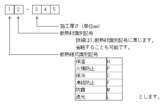 保温・保冷材の識別記号は、原則として下記に準じます。