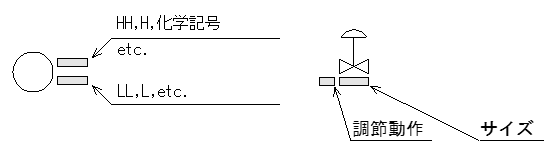 計装設備の機能、目的等を特に示す必要のある場合は、下記のように図記号のかたわらに説明を付記しても構いません。
