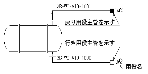 配管ないし機器の付属ノズルに接続する形で記入してください。
