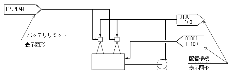 - 単純表示記号とは、タンクローリー、原料表示等、図面の補足説明的な表示のみで、バルブ集計やラインリスト等のエンジニアリング・データに対し、何ら影響を及ぼさないものをいいます。