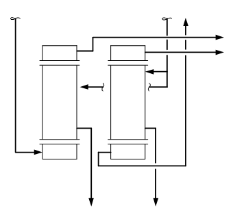 - 計装用配管を示す線は、装置および機器を横切らないようにします。やむを得ず横切る場合は、「配管および配管付属品の記入法:配管の記入法」の項目6に準じます。