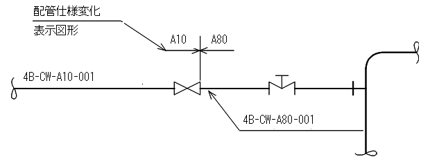 ただし、仕様を特に示したいもの、配管仕様の示していない小口径配管上の弁等については、スペック記号も合わせて記入します。