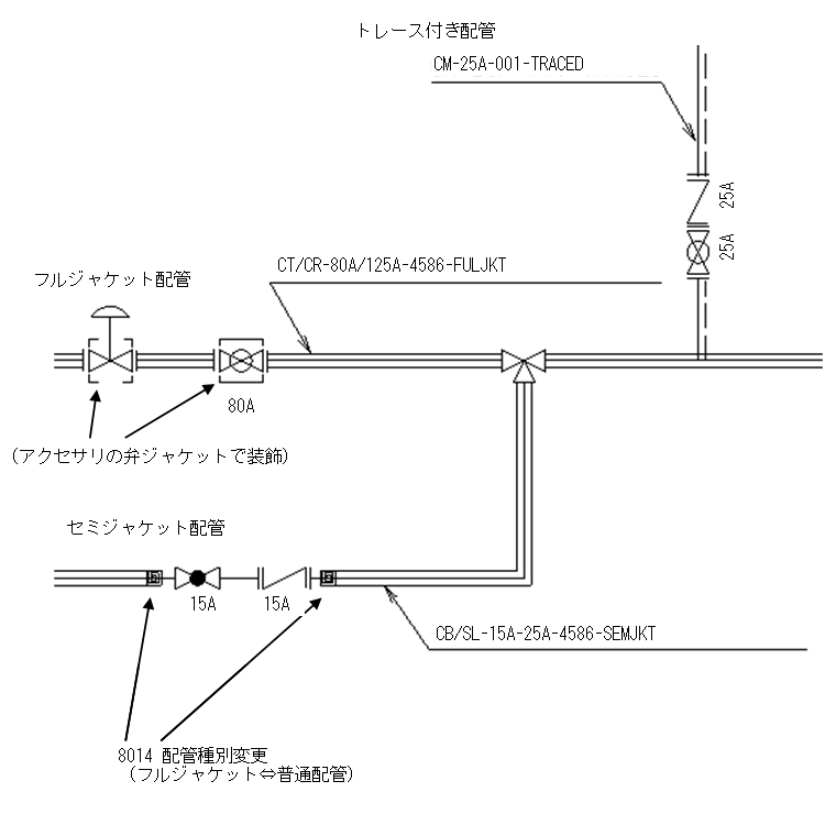 (セミジャケットライン上の"配管種別変更マーク■"は、理想的には、不要)