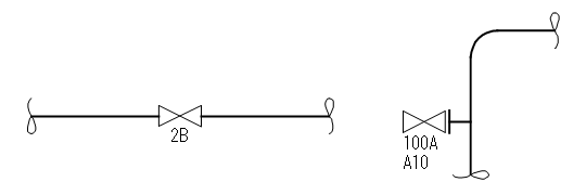 別の作図基準もあります。「配管および配管付属品の記入法:配管の記入法」を参照ください。