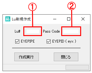 新規作成するLu#(①)とパスコード(②)を入力します。
