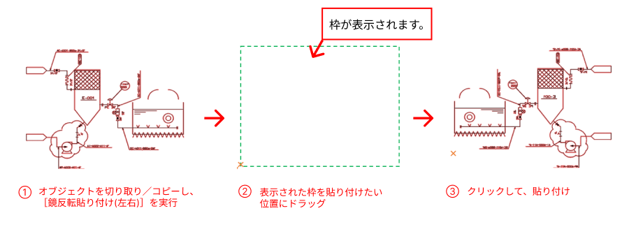 切り取りやコピーしたオブジェクトを左右反転させて、任意の位置に貼り付けることができます。
