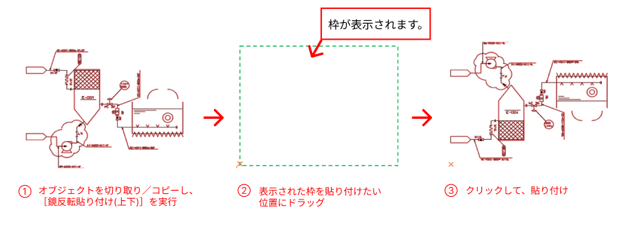切り取りやコピーしたオブジェクトを上下反転させて、任意の位置に貼り付けることができます。