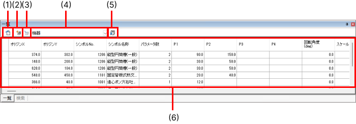 | ⑥ | "機器/機器付属品(FEQP)" | 機器と機器付属品シンボルのノードで、開くコマンドまたはダブルクリックでメインウィンドウに機器/機器付属品シンボル一覧を開きます。 |