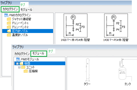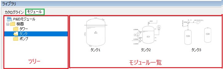「ライブラリウィンドウ」の「P&IDモジュール」にモジュールが登録されます。