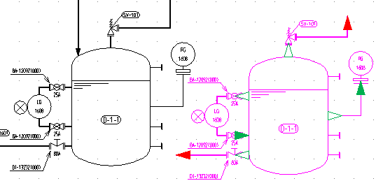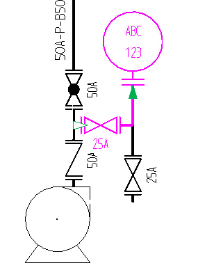 - DXF/DWGを参照するシンボルにラインを接続するにはライン接続位置を設定する必要があります。シンボル編集のライン接続、フランジ設定を参照してください。