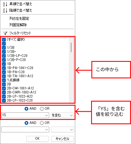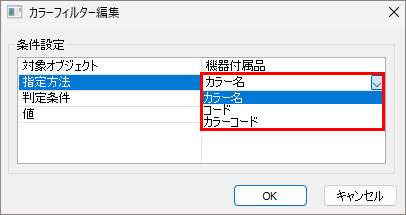 計器をもつカタログラインは「接続形式」と「タグNo.」が設定できます。