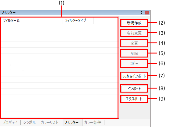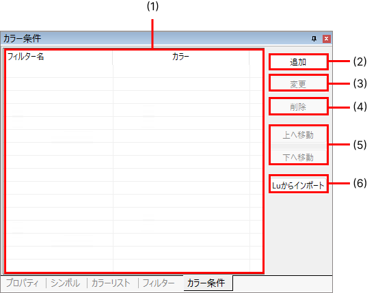 シンボル/カラーリスト/フィルター/カラー条件ウィンドウは、各タブをドラッグして移動することでドッキングを解除したり再配置したりすることもできます。