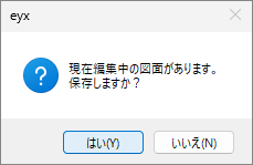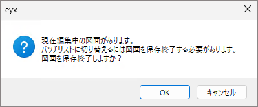 - 編集中の未保存の図面がある場合、リストウィンドウを開くと以下のようなメッセージが表示されます。