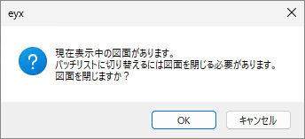 - 図面を表示している場合、リストタイプを[バッチ]に切り替えると、以下のようなメッセージが表示されます。