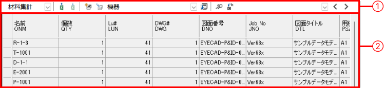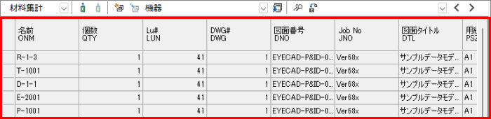 | 材料集計 | リストの項目や値を集計することができます。 セルは直接編集できません。 |
